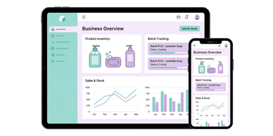 Inventory, batch tracking, compliance, and orders for handmade soap and cosmetic businesses.
